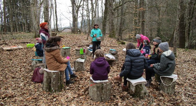 In unserem Baumstumpf-Sitzkreis wurde wie immer zunächst besprochen, was es für den Vormittag alles zu tun gibt und gemeinsame Entscheidungen getroffen.