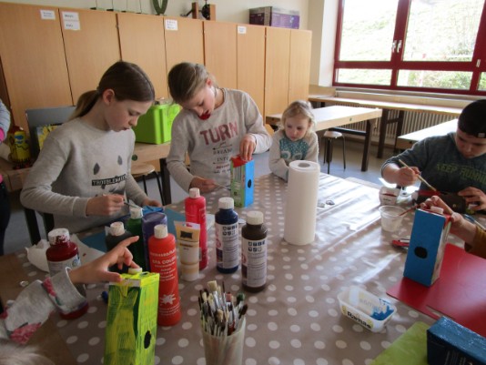 Die Marienkäfer trafen sich am 11. März 2023, um für kleine Vögel (Meisen, Finken…) Nistplätze aus Milchkartons zu basteln.