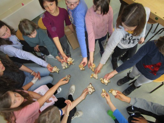 Ostern steht vor der Tür und auch die Marienkäfer haben themenbezogen gewerkelt. Hierfür mussten zunächst alle benötigten Holzscheiben einzeln abgekappt werden. Ein ganz schöner Kraftakt, diese Sägen! Die Belohnung gab es dann zum Schluss: lauter hübsche und einzigartige Häschen!